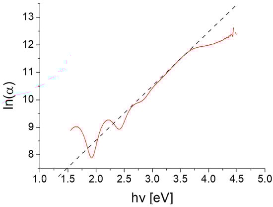 The Urbach tail, which occurs for disordered, poorly crystalline and amorphous materials, is an exponent part of absorption appearing in the area of the fundamental absorption edge. It is described by the dependence [43] (4):