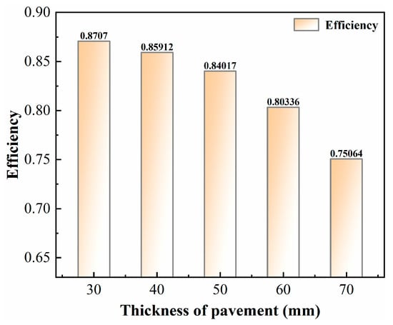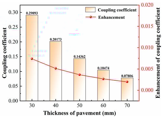 - The critical thickness threshold for magnetite-modified asphalt pavements is identified as 50 mm. Below 50 mm, maximum and minimum magnetic field intensities exhibit strong negative correlations with thickness, while exceeding this threshold intensifies magnetic field non-uniformity in the coil near-field region, leading to significant energy dissipation. The coupling coefficient gain of magnetite-modified mixtures weakens markedly beyond 50 mm. Finite element simulations (error < 2%) validate the model accuracy. These findings provide critical guidance for balancing electromagnetic performance and structural feasibility in wireless charging pavements. Future work will refine multiphase composite models to optimize magnetic material distribution.