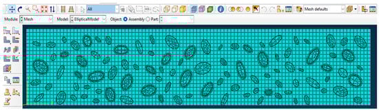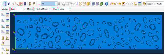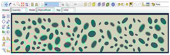 The three components—the rectangular part, elliptical aggregates, and concentric rings—are autonomous, and each has its own coordinate system within the model. To integrate them into the global coordinate system, the assembly module is employed to instantiate these parts. Each part is meshed separately when it is independent, whereas a dependent part instance is meshed based on the original part’s mesh configuration [