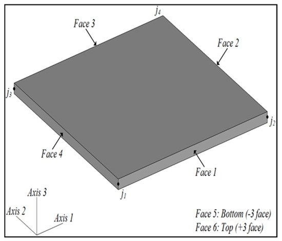 Figure 2 depicts the shape and node positions for this element type. A layered shell element was used to model being coated with MgO. This element allows numerous different material layers, with different orientations and orthotropic material properties in each layer. This element can be used to model layered thick shells or solids. A schematic view of the shell element is shown in Figure 2. For thin and tall structures like chimneys, the characterization of material properties and boundary conditions, which must be taken into account in the analytical study, is critical. In the analytical model, the linear elastic material properties of steel and MgO were assumed. The chimney was built out of steel. For steel, SAP2000 software requires input data for materials such as modulus of elasticity, Poisson’s ratio and unit weight. In Table 1, the elasticity modulus, Poisson’s ratio and mass per unit volume of non-alloy structural steel are given [48,49].