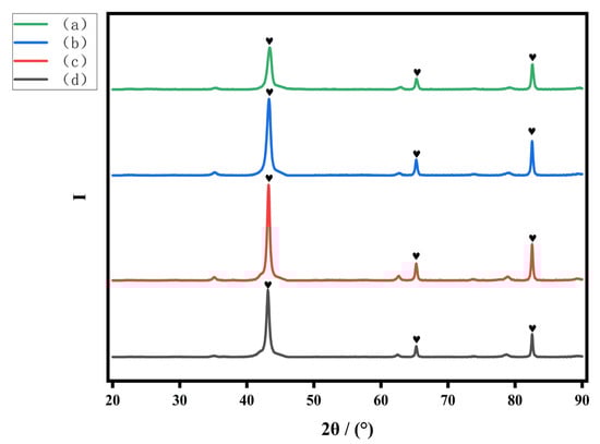 The cathode and anode were, respectively, made of 45 mm × 40 mm × 2 mm annealed low-carbon steel sheets and nickel sheets. The electrodes before electrode deposition were polished and cleaned before plating to ensure the combination of the coating and the substrate. Under the condition that the current density was 4 A/dm2 and the room temperature was 25 °C, the DC rectifier was used for electrodeposition for 15 min each, respectively. The composition and parameter selections for DC electrodeposition are listed in Table 2.