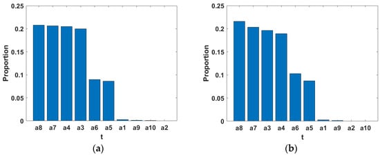 Order of importance of temporal features. (a) t (iavg = 55.79 A/m2), (b) t (iavg = 200 A/m2).