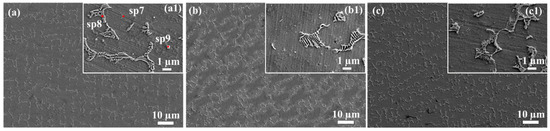 SEM images of coating: (a) 0.5%Al, (b) 1%Al, and (c) 2.5Al. (a1) The partial enlarged view of Figure (a) (b1) The partial enlarged view of Figure (b); (c1) The partial enlarged view of Figure (c).