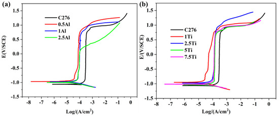 Polarization curves of (a) C276+Al and (b) C276+Ti.