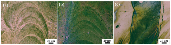 The images of the corrosion surface of the coating: (a) C276, (b) C276 + 5%Ti, and (c) C276 + 2.5%Al.