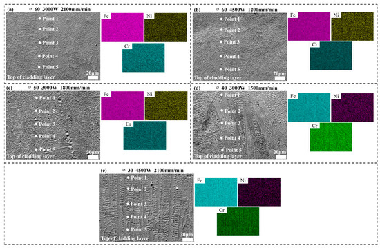To accurately assess the chemical makeup within the cladding, an additional method involves using EDS to ascertain the Fe concentration within it. Utilizing the elemental distribution data acquired from the EDS analysis, the dilution rate is subsequently recalculated through the elemental analysis method, as illustrated in Equation (4).