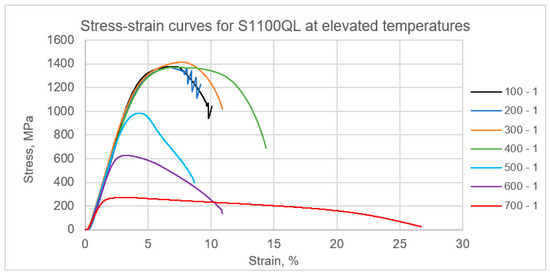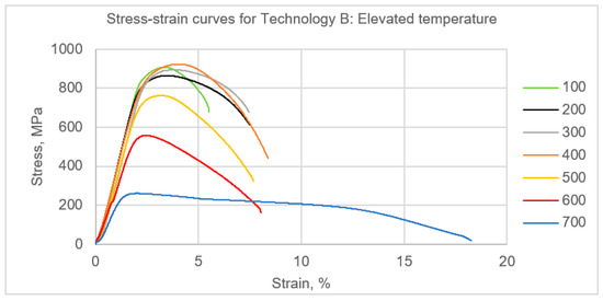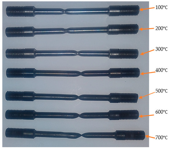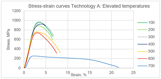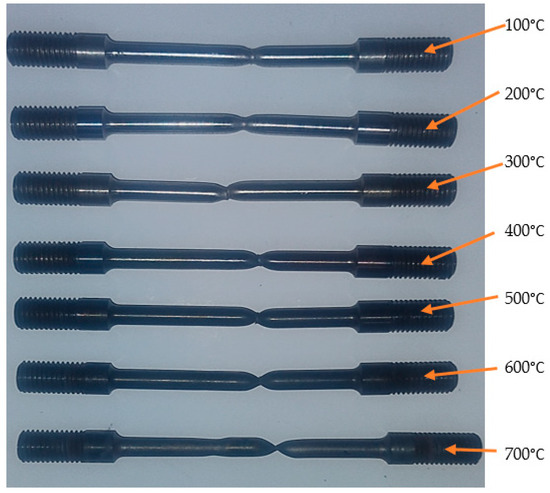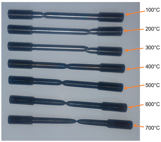Many studies devoted to the investigation of tensile properties at elevated temperatures already exist in the literature [4,5,6]. Studies have been conducted on different materials where examination temperatures, heating regimes, and other conditions were changed so that their influence on the materials’ behavior could be assessed.