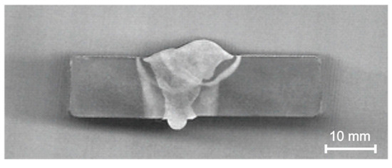 The prepared plates were joined manually with several tack welds (Figure 3) to form a groove for the weld metal to be deployed. For this technology, according to the steel producer, the root pass was welded using an austenitic stainless-steel filler material and without preheating. In this case, the G 18 8 Mn grade of filler material is recommended, and according to recommendations, the authors chose SI Jesenice’s MIG 18/8/6 Si filler material (SI Jesenice, Jesenice and Slovenia), since it fulfills the posed conditions. The chemical composition and mechanical properties, as well as the recommended welding parameters, are displayed in Table 5, Table 6 and Table 7 [22].