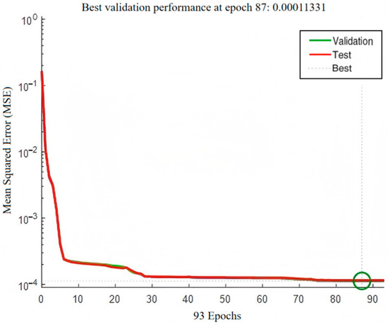 - Calculate the fitness, determine the optimal position of the population, and input the optimal structural parameters into the BP neural network for training.