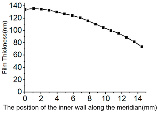 The film thickness distribution along the meridian direction after optimizing the coating process using the PPO algorithm.
