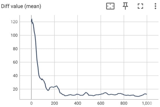 The model was then trained multiple times, and the trained model was subsequently employed to process the simulation data in an iterative optimization framework. During the computational procedure, 1000 optimization cycles were executed to identify the optimal coating strategy. Figure 12 shows the flowchart of PPO for the coating process. During each iteration, the model outputs the PV value of the film thickness under the current strategy. After 1000 iterations, the model identifies the iteration with the minimum PV value and provides the corresponding deposition time required for each coating angle under that strategy. Figure 13 illustrates the PV value output during each of the 1000 iterations. After approximately 250 iterations, the PV values consistently remain below 15 nm, indicating good convergence of the model’s algorithm. This suggests that the model is well-suited for optimizing coating strategies and can be effectively applied to optimize the coating process of resonators with varying requirements and dimensions in further applications. Table 4 presents the results obtained from the PPO output, showing the deposition angle and the corresponding time required for each angle. The unit of time is the time required for the QCM reading to increase by 1 nm. Since the rate of increase in the QCM reading is influenced by various deposition parameters, which are subject to continuous optimization during the coating process, the exact times are not specified in this study. Instead, the QCM reading is used as a reference for time. Since the target film thickness is 100 nm, the calculation is completed when the film thickness recorded by the QCM reaches this value.