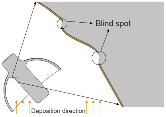 To address this issue, a correction mask is used to ensure sufficient deposition at the junction, without affecting the uniformity of the film on the shell [28]. After the coating achieves high uniformity on the shell, a correction mask is added. This mask blocks the deposition of coating material onto the shell, allowing the coating material to only be deposited at the junction. Consequently, the correction mask needs to be designed to meet these requirements [29].