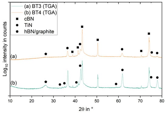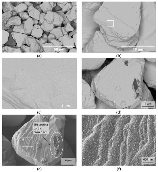 - Hering, B.; Wolfrum, A.-K.; Gestrich, T.; Herrmann, M. Thermal Stability of TiN Coated Cubic Boron Nitride Powder. Materials 2021, 14, 1642. [Google Scholar] [CrossRef]