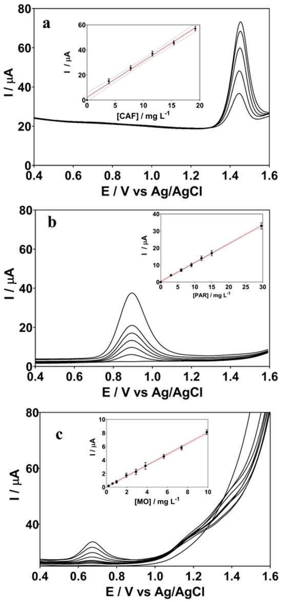 - Silva, T.A.; Zanin, H.; Corat, E.J.; Fatibello-Filho, O. Simultaneous Voltammetric Determination of Paracetamol, Codeine and Caffeine on Diamond-like Carbon Porous Electrodes. Electroanalysis 2017, 29, 907–916. [Google Scholar] [CrossRef]