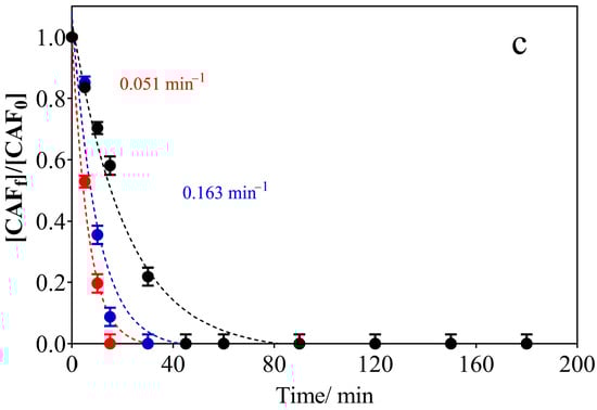 - Indermuhle, C.; Martín de Vidales, M.J.; Sáez, C.; Robles, J.; Cañizares, P.; García-Reyes, J.F.; Molina-Díaz, A.; Comninellis, C.; Rodrigo, M.A. Degradation of Caffeine by Conductive Diamond Electrochemical Oxidation. Chemosphere 2013, 93, 1720–1725. [Google Scholar] [CrossRef]