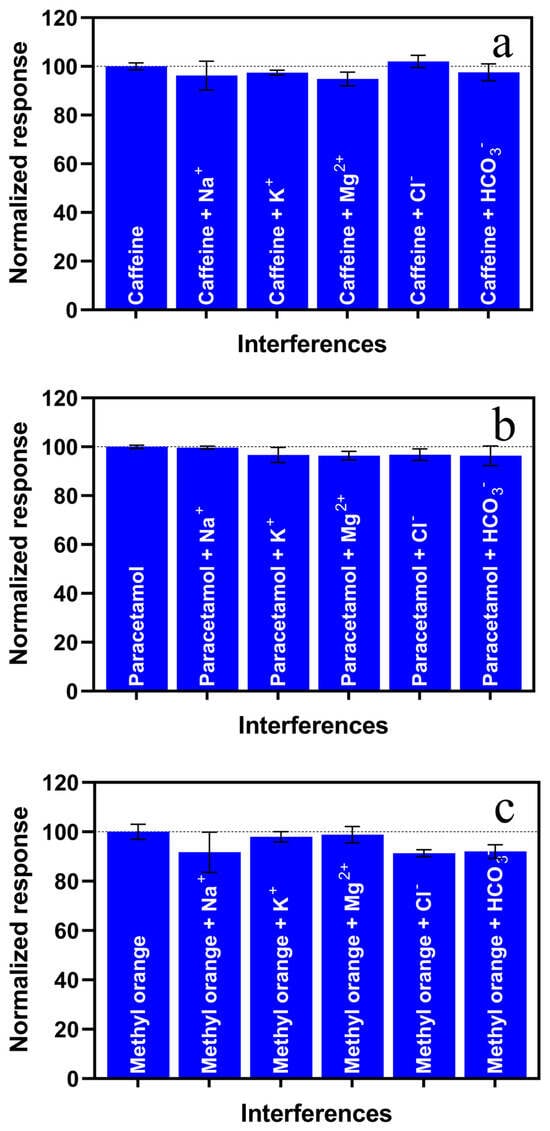 - Tefera, M.; Geto, A.; Tessema, M.; Admassie, S. Simultaneous Determination of Caffeine and Paracetamol by Square Wave Voltammetry at Poly(4-Amino-3-Hydroxynaphthalene Sulfonic Acid)-Modified Glassy Carbon Electrode. Food Chem. 2016, 210, 156–162. [Google Scholar] [CrossRef]