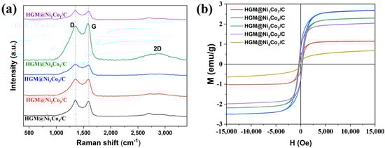 (a) Raman spectrum and (b) VSM diagram of HGM@NixCoy/C.