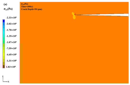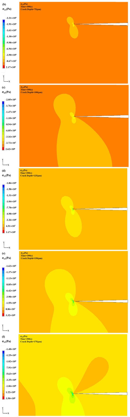 3.2.2. Effect of Crack Depth on Stress Distribution