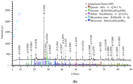 X-ray phase analysis of diatomite raw materials from the Zhalpak deposit. (a)—low-iron variety of diatomite; (b)—high-iron diatomite.