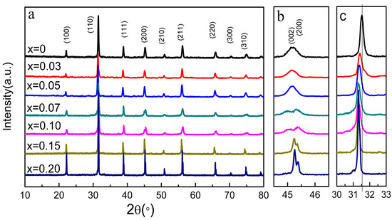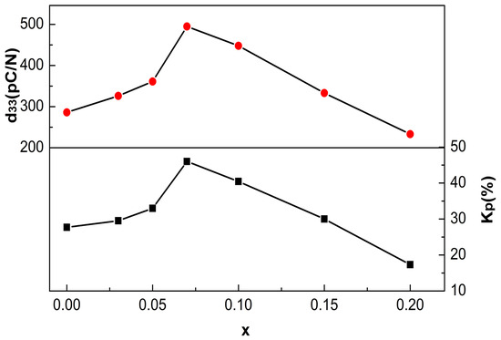 - Keswani, B.C.; Patil, S.I.; James, A.R.; Kolekar, Y.D.; Ramana, C.V. Correlation between structural, ferroelectric, piezoelectric and dielectric properties of Ba0.7Ca0.3TiO3-xBaTi0.8Zr0.2O3 (x = 0.45, 0.55) ceramics. Ceram. Int. 2018, 44, 20921–20928. [Google Scholar] [CrossRef]
