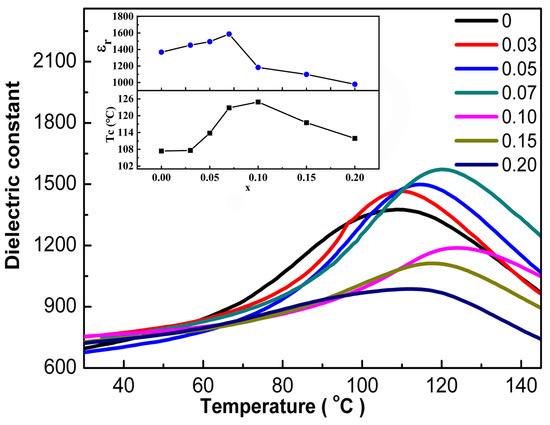 - Zhao, C.; Wu, B.; Thong, H.-C.; Wu, J. Improved temperature stability and high piezoelectricity in lead-free barium titanate-based ceramics. J. Eur. Ceram. Soc. 2018, 38, 5411–5419. [Google Scholar] [CrossRef]