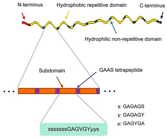 Structural schematic diagram of silk fibroin heavy chain (H-chain). Reprinted with permission from Ref. [14]. Copyright 2015 Elsevier.