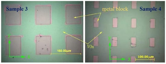 The first type of design was achieved through the following process: First, the silicon-based metal hole array was fabricated by photolithography and thermal evaporation, and the evaporated metal was Al with a thickness of about 500 nm. The thin film, 600 nm thick, was then covered on the sample surface by magnetron sputtering. Two samples of this type were prepared in the experiment with the following parameters: