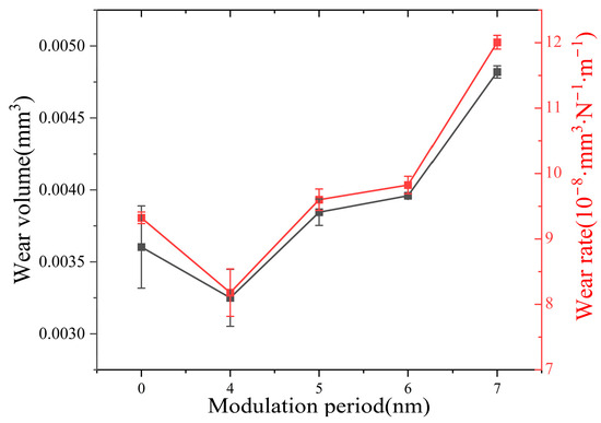Plots of wear rate and wear volume obtained for the AlCrTiVNbN/TiSiN nano multilayer films.
