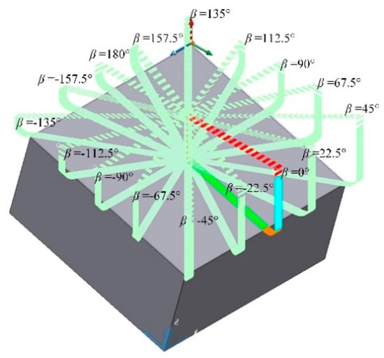 on the cutting plane, at a fixed inclination angle of 15°, with changes in the feed direction angle β and the axial angle κ, is illustrated in Figure 9. As shown in the figure, the chip flow angle
