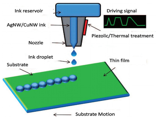 - Wang, Y.; Wu, X.; Wang, K.; Lin, K.; Xie, H.; Zhang, X.; Li, J. Novel insights into inkjet printed silver nanowires flexible transparent Conductive Films. Int. J. Mol. Sci. 2021, 22, 7719. [Google Scholar] [CrossRef] [PubMed]