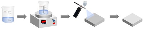 Preparation of superhydrophobic coating: As illustrated in Figure 1, sodium laurate solution was prepared by heating and stirring until clarification. Subsequently, the substrate was placed horizontally, and 5 mL (3.13 L/m2) of the solution was uniformly sprayed onto the substrate using a spray gun operated at 600 kPa pressure, maintaining a nozzle-to-substrate distance of 2~3 cm. The coated specimen was then air-dried at ambient temperature (5~35 °C, relative humidity ≤ 60%) for about 0.5 h to form the superhydrophobic coating.