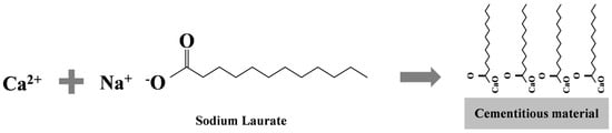 Although conventional superhydrophobic coatings typically rely on binary synergistic systems, recent studies have demonstrated that single-component materials can simultaneously achieve low surface energy and micro-nanoscale roughness, thereby enabling superhydrophobicity. Wang et al. [14] screened sodium laurate from six sodium carboxylates based on solubility and hydrophobic modification efficacy as the raw material for superhydrophobic surface fabrication. By immersing hardened cement paste in a 1% sodium laurate solution for 5 s, they obtained a superhydrophobic surface with a WCA of 154.3° and a SA of 8.7°. Post-immersion analysis revealed calcium laurate coverage on the cement surface. This low-surface-energy reaction product formed an irregular lamellar microstructure. The resulting microstructure directly contributed to the superhydrophobic behavior. This method significantly enhanced hydrophobicity. Sodium laurate is non-toxic, harmless, and safe under normal conditions. However, the immersion process has limitations: low preparation efficiency and poor engineering applicability. Furthermore, this study did not systematically evaluate the mechanical durability, chemical corrosion resistance, environmental stability, or mechanical properties of the fabricated coatings. To address these gaps, this work aims to develop a simpler, faster, and economically viable superhydrophobic coating technique while comprehensively investigating its performance characteristics.