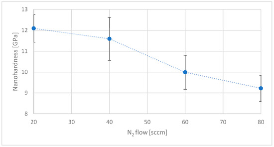 Relation between nanohardness and nitrogen flow.