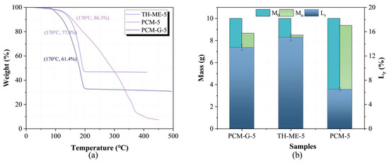 Thermal stability and permeation resistance of MPCM: (a) TG curves; (b) Mass and Lr.