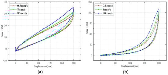 Force–displacement curves of flexible anti-collision ring loading at different speeds. (a) Compression test. (b) Tensile test.