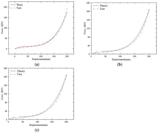 Comparison of theoretical formula with compression test results. (a) 0.8 mm/s. (b) 8 mm/s. (c) 80 mm/s.