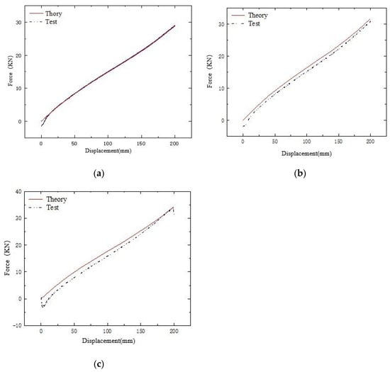 Comparison of theoretical formula with tensile test results. (a) 0.8 mm/s. (b) 8 mm/s. (c) 80 mm/s.