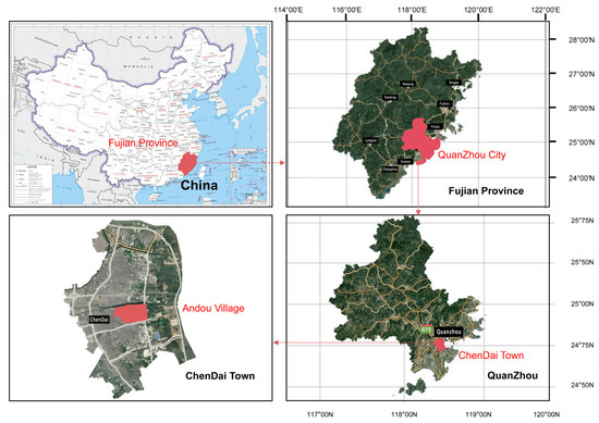 The former residence of Ding Gongchen (No. 107 Guanyin Lane, Anduo Village, Chendai Town), located near the mouth of Quanzhou Bay in the Jinjiang River Basin, was selected as the research sample (Figure 2) to reveal the internal factors affecting the durability of BCWs in terms of the structure and materials of red bricks and clay cores, based on the following: