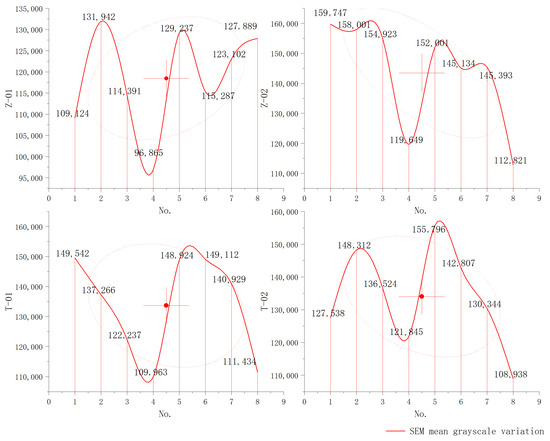 Curve graph variation in SEM image average mean grayscale value (chart source: drawing by Origin 2022).