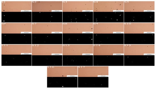 Optical micrographs of the coating surfaces after polishing, showing the pore morphology for each tested condition; The samples S1–S17 were prepared based on the 17 process parameters generated by the Box-Behnken Design.