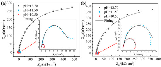 | pH | Rs/ (Ω·cm2) | Qf/ (Ω−1·cm−2·s−nf) | nf | Rf/ (Ω·cm2) | Qdl/ (Ω−1·cm−2·s−ndl) | ndl | Rct/ (Ω·cm2) | |