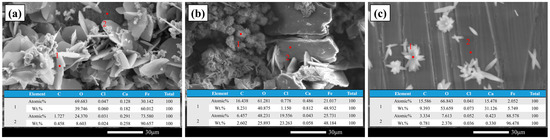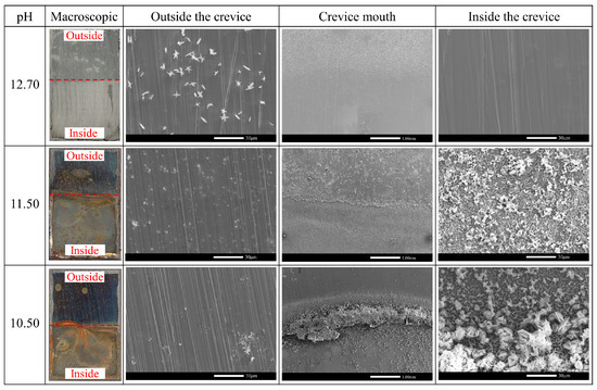 3.2. Surface Morphology and Corrosion Product Composition