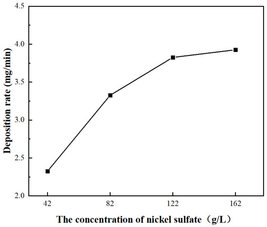 4.2. Analysis of the Effect of Nickel Sulfate Concentration on the Deposition Rate of Electroplated Ni Coatings
