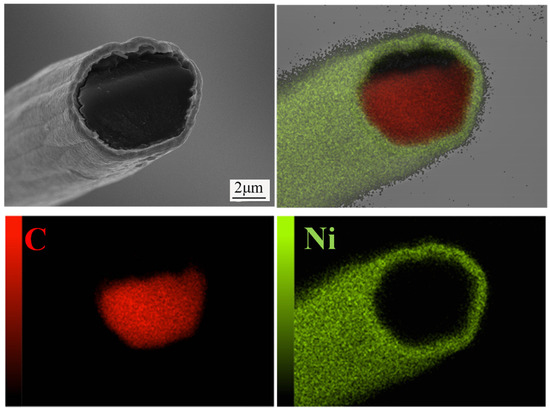 EDS elemental mapping analysis of Ni coating on carbon fiber surface.