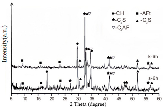 XRD pattern of hydrated cement paste specimens at 6 h.