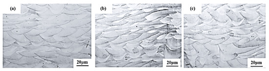 Metallographic diagram of the composite samples with different scanning line spacing: (a) h = 0.06 mm, (b) h = 0.05 mm, (c) h = 0.04 mm.