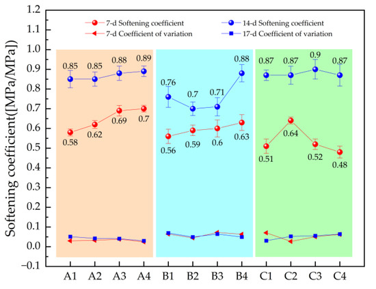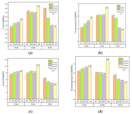 19] manifested superior mechanical properties over conventional lime–fly ash stabilized materials. When the ratio of phosphogypsum to fly ash is approximately 1:1, alongside a 6%–8% content of lime-based stabilizers, the strength is 1 to 2 times that of traditional lime–fly ash consolidated materials. Houji Zhang et al. [