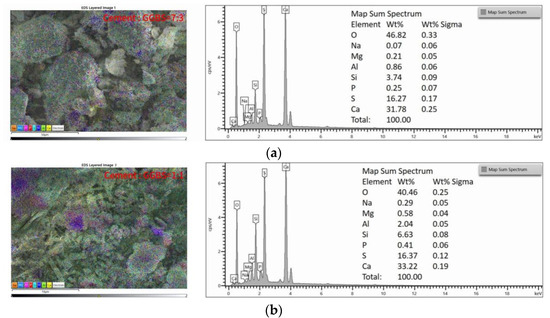20] propounded the applicable mix ratio of cement-slag stabilized phosphogypsum macadam base, and attested it by paving test sections in actual projects. The outcomes of road performance and pollutant leaching evinced that the fluorine content in the leachate of phosphogypsum composite stabilized material is merely 0.33% of that in the pure phosphogypsum leachate, and the total phosphorus content is 0.023% of the original phosphogypsum specimen. No other principal harmful substances were detected (e.g., arsenic, chromium, lead and cadmium), which complied with the requirements of the Solid Waste-extraction Procedure for Leaching Toxicity—Horizontal Vibration Method of the People’s Republic of China HJ 557-2010 [