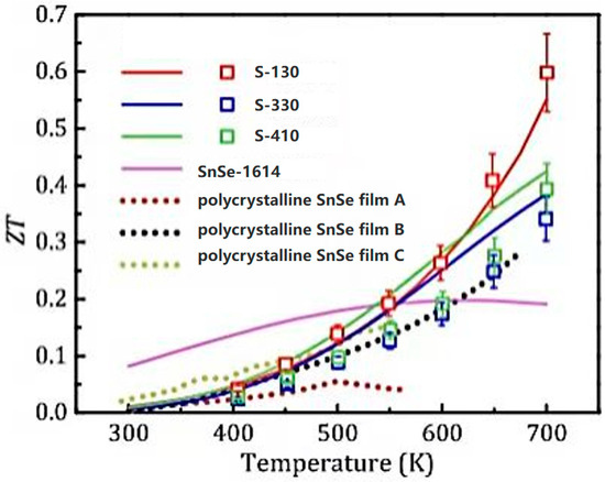 ZT value of SnSe film samples and the corresponding theoretical models [31].