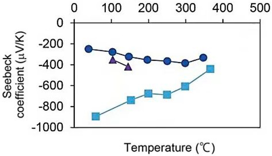 Diagram showing relationship between Seebeck coefficient and temperature of Bi doped SnSe thin films [18].